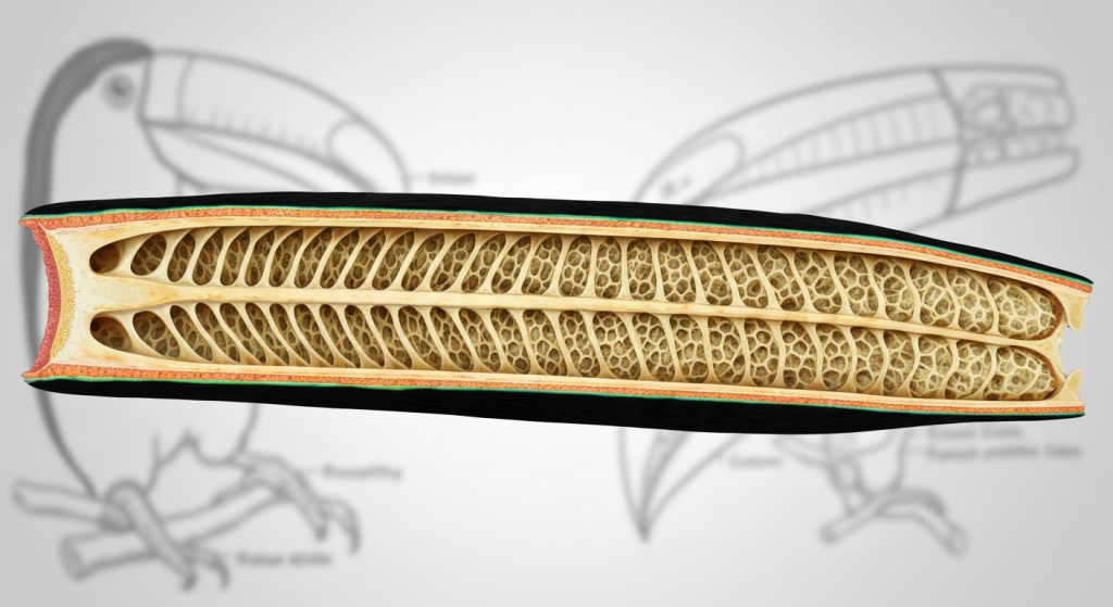 The primary reason the toucan’s bill is so light lies in its internal composition. It is not a solid piece of bone. Instead, the inside of the bill is a complex matrix of bony struts and supports, crisscrossing to form a rigid, honeycomb-like structure that is mostly hollow. This internal framework, made of bone called trabeculae, provides incredible structural integrity without the mass and density of a solid material. Think of it like the steel truss system used to build a bridge or a skyscraper—engineers use interconnected beams to distribute weight and withstand force, leaving large empty spaces to save on materials and reduce overall weight.