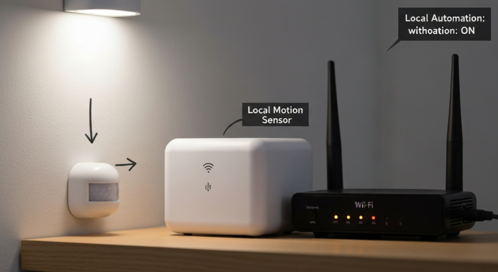 This hub is the local brain. When you tell your app to turn on a light, the command goes from your phone (on the same Wi-Fi) directly to the hub, which tells the light to turn on. The internet is never involved for basic operations.