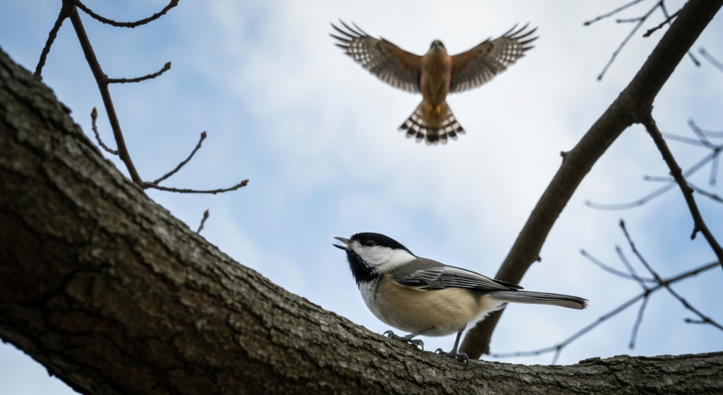 From my own observations, this plays out exactly as the research suggests. I once watched a flock of chickadees foraging peacefully when a large, slow-moving Red-tailed Hawk soared high overhead. The first chickadee to spot it let out a calm “chick-a-dee-dee.” Just two “dees.” The flock took note, became more vigilant, but continued foraging. The hawk was big, but it was distant and not an immediate threat.