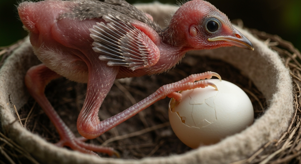 The cuckoo’s adaptations continue even after hatching. The cuckoo egg has a shorter incubation period than the host’s eggs, meaning it hatches first. This gives the cuckoo chick a critical head start. Within hours of hatching, a blind, naked, and seemingly helpless cuckoo chick is driven by a powerful instinct to eliminate all competition.