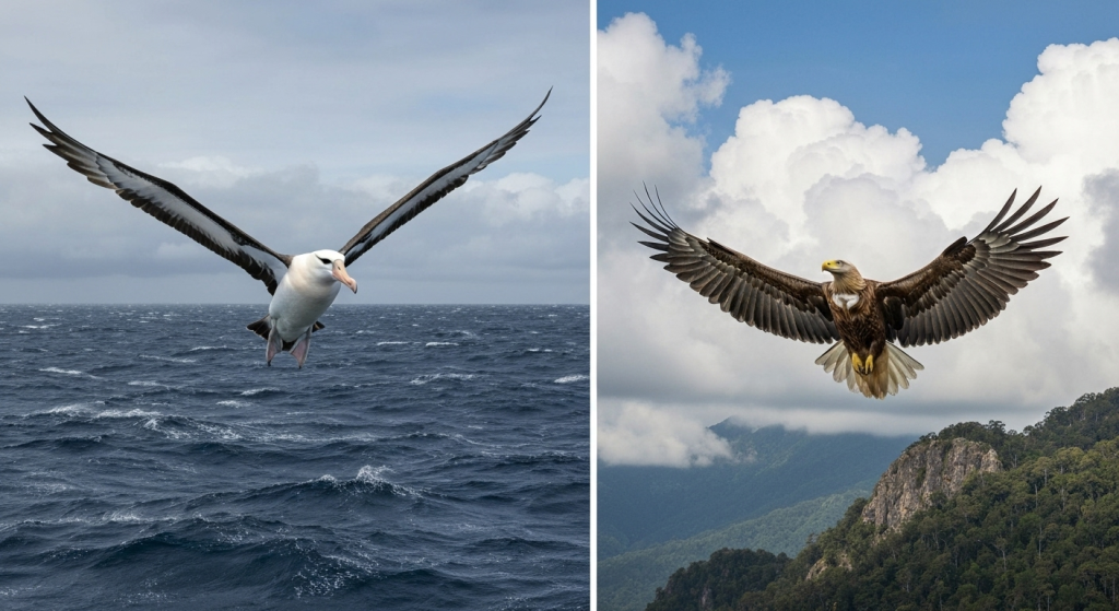 - Albatross Wings: Long and narrow. This shape is aerodynamically perfect for gliding, minimizing drag while maximizing lift at high speeds. It’s similar to the wings of a competition sailplane.